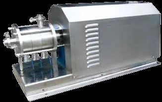 Three sets of stators and rotors are equipped in working cavity. Driving shaft in working cavity is an arm, electrical motor and the shaft in bearing cabinet can be connected by spring coupling to improve the operation quality of driving shaft. Seal form can be selected in different conditions. It is fit for middle-large scale on-line continuous production or circulated treatment production process.