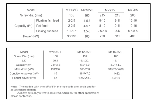 Гибкий совмещенный барабан и совмещенный двойной шнек дают возможность выполнять набор оптимальных комбинаций для обработки различных материалов, а конструкция, способствующая быстрой замене деталей, незаменима для производства различной продукции, такой как корм для рыб, домашних животных, получение полножировой экструдированной сои и т. д. Благодаря специальному подвесному режущему устройству регулировка и замена лезвий может производиться без остановки машины, в результате чего очевидно повышение эффективности производства;